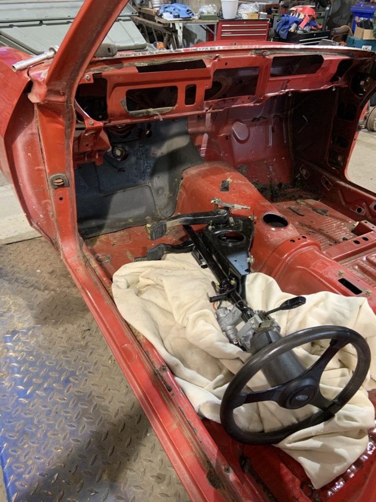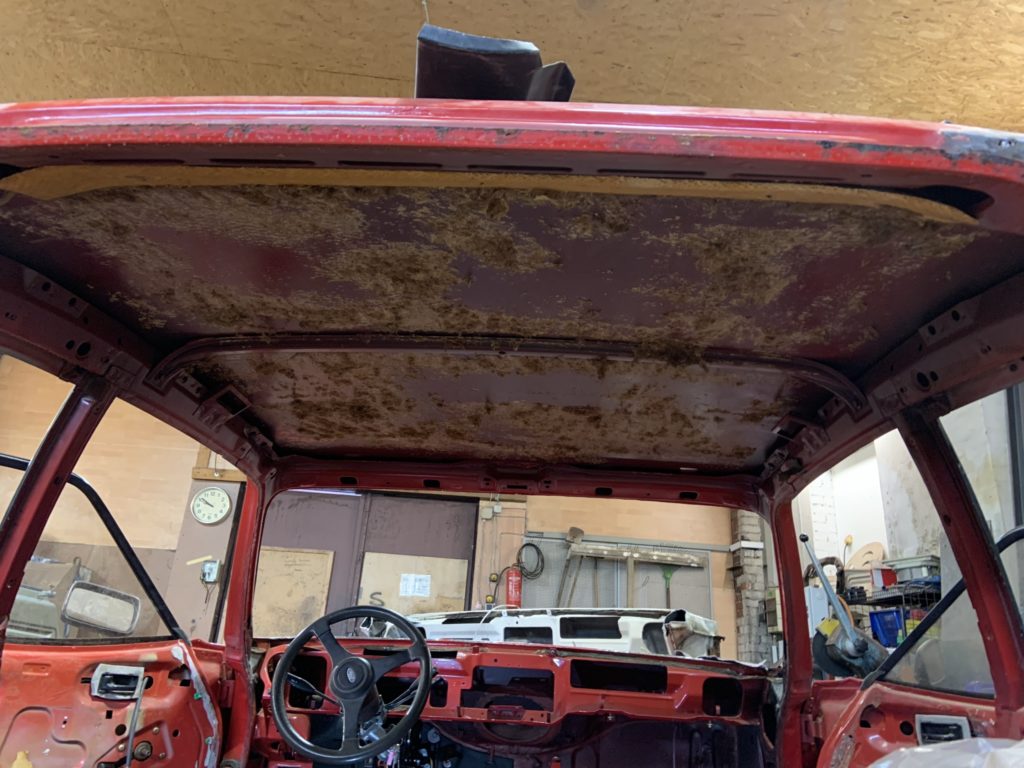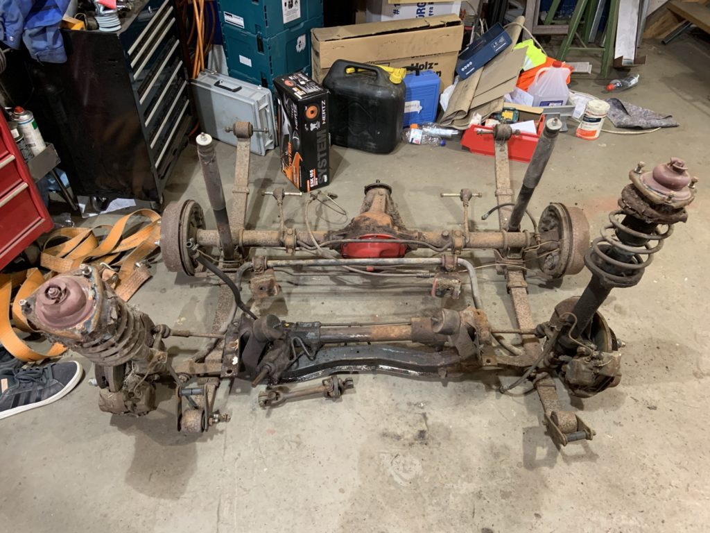 der muss auch raus sowie das Muffige darunter. Die letzten Leitungen und die Türen auch ab. Mittwoch die Achsen und nackig ist die Lady
