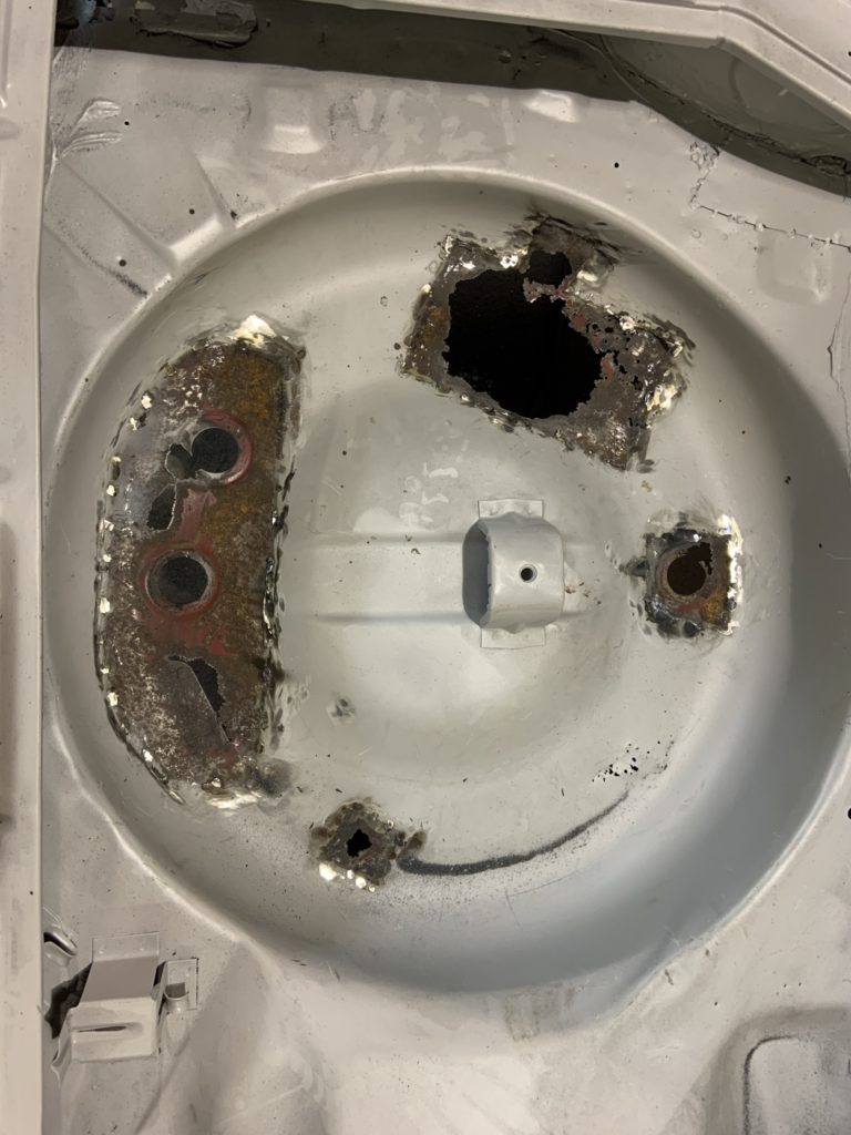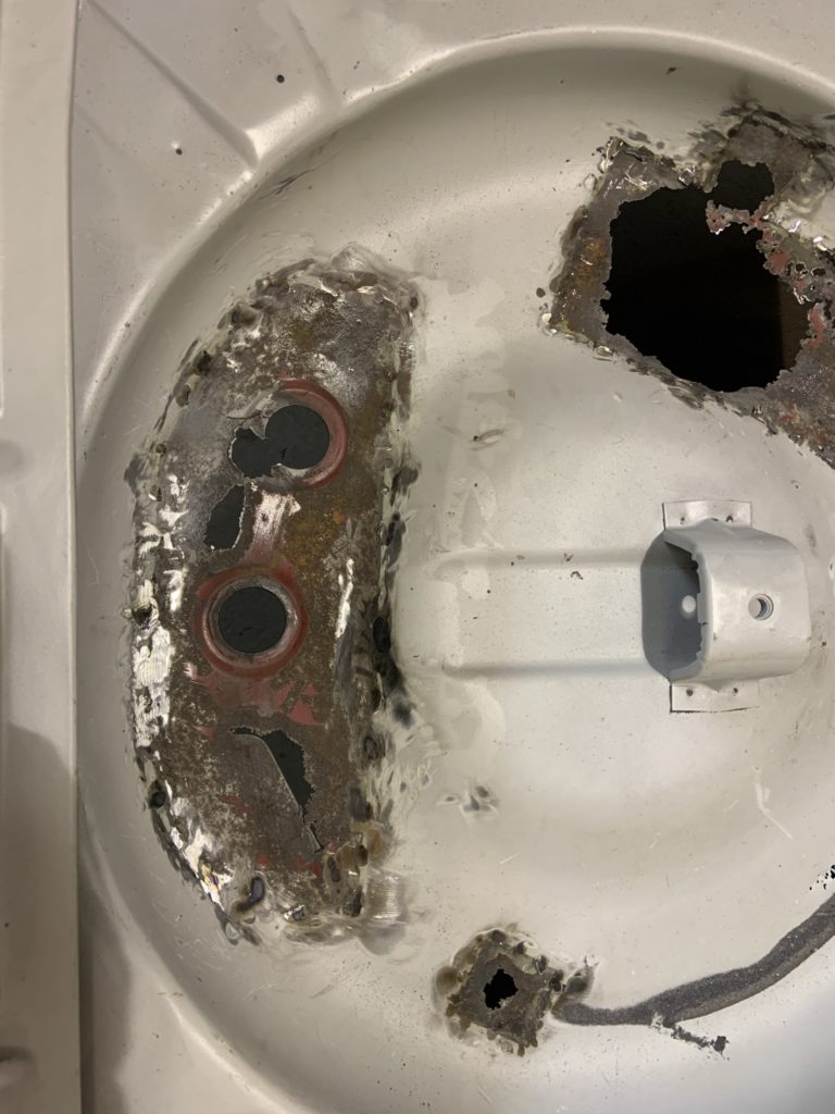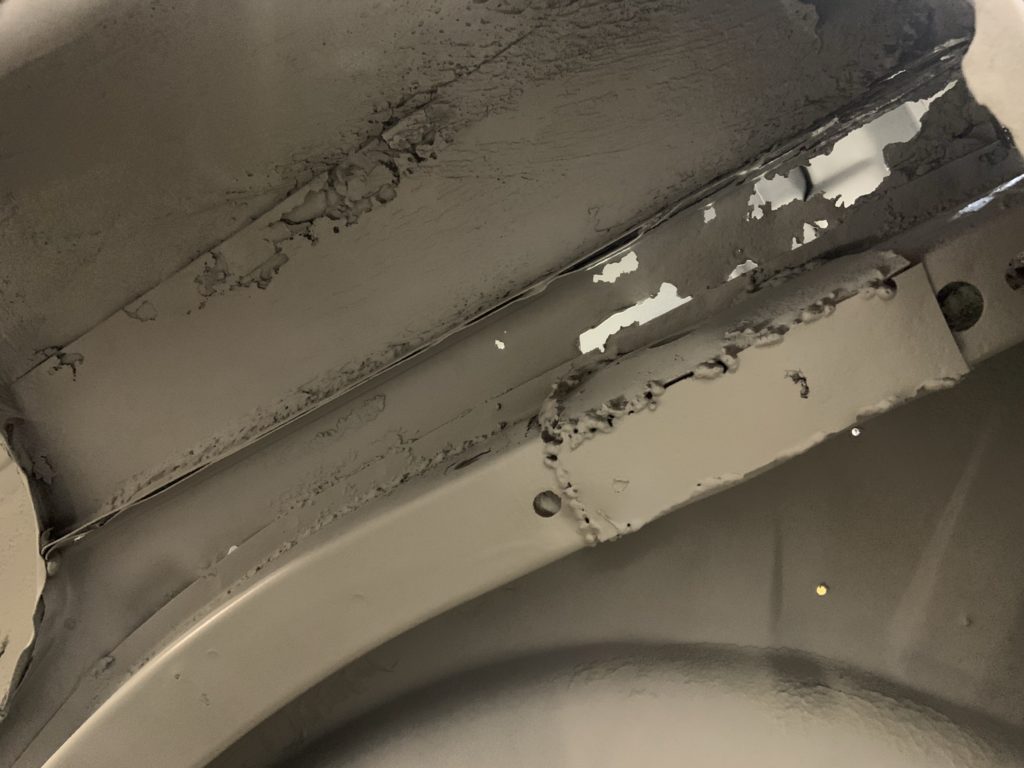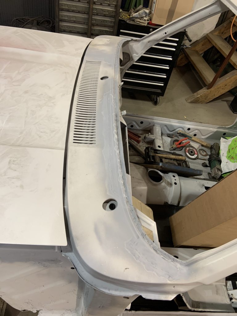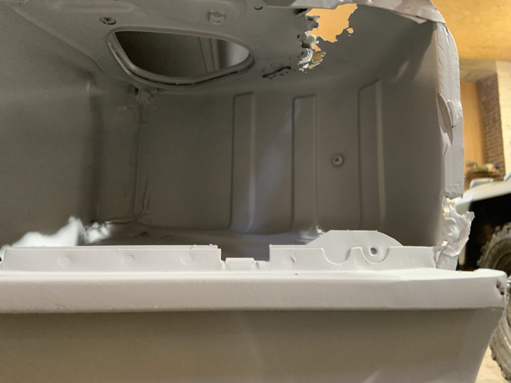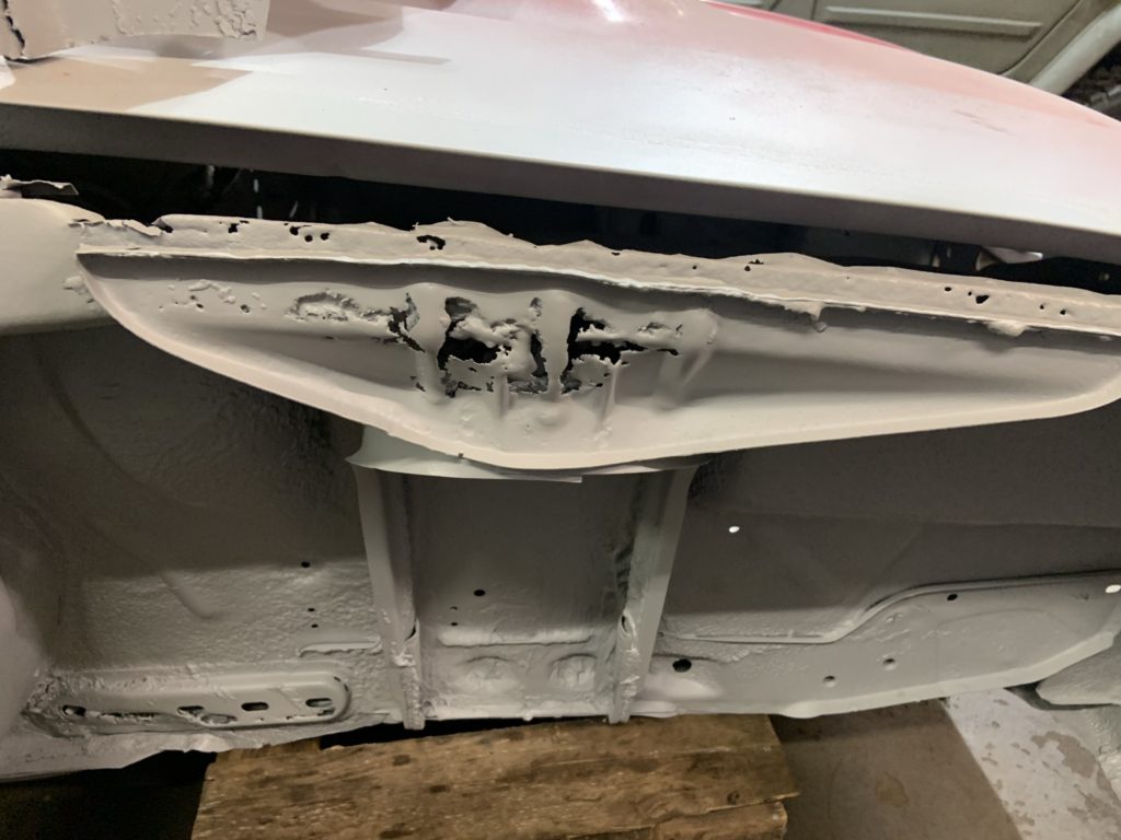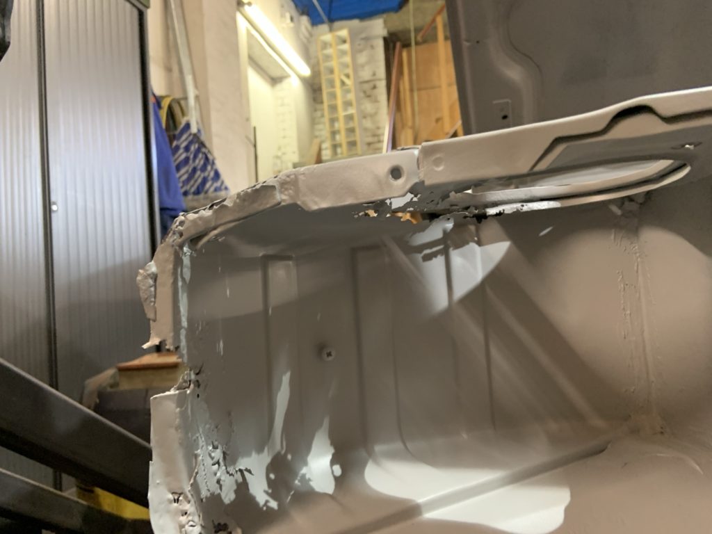 nachdem die Lady sandgestahlt wurde und das ganz Ausmaß der “Katastophe” sichtbar wurde.. schnell Grundierung drauf 😀