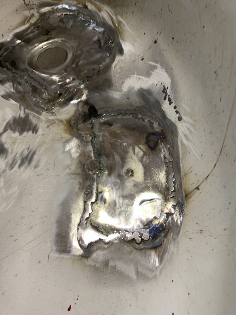 ein Blech vom Profi eingeschweißt, eins vom mir 😀