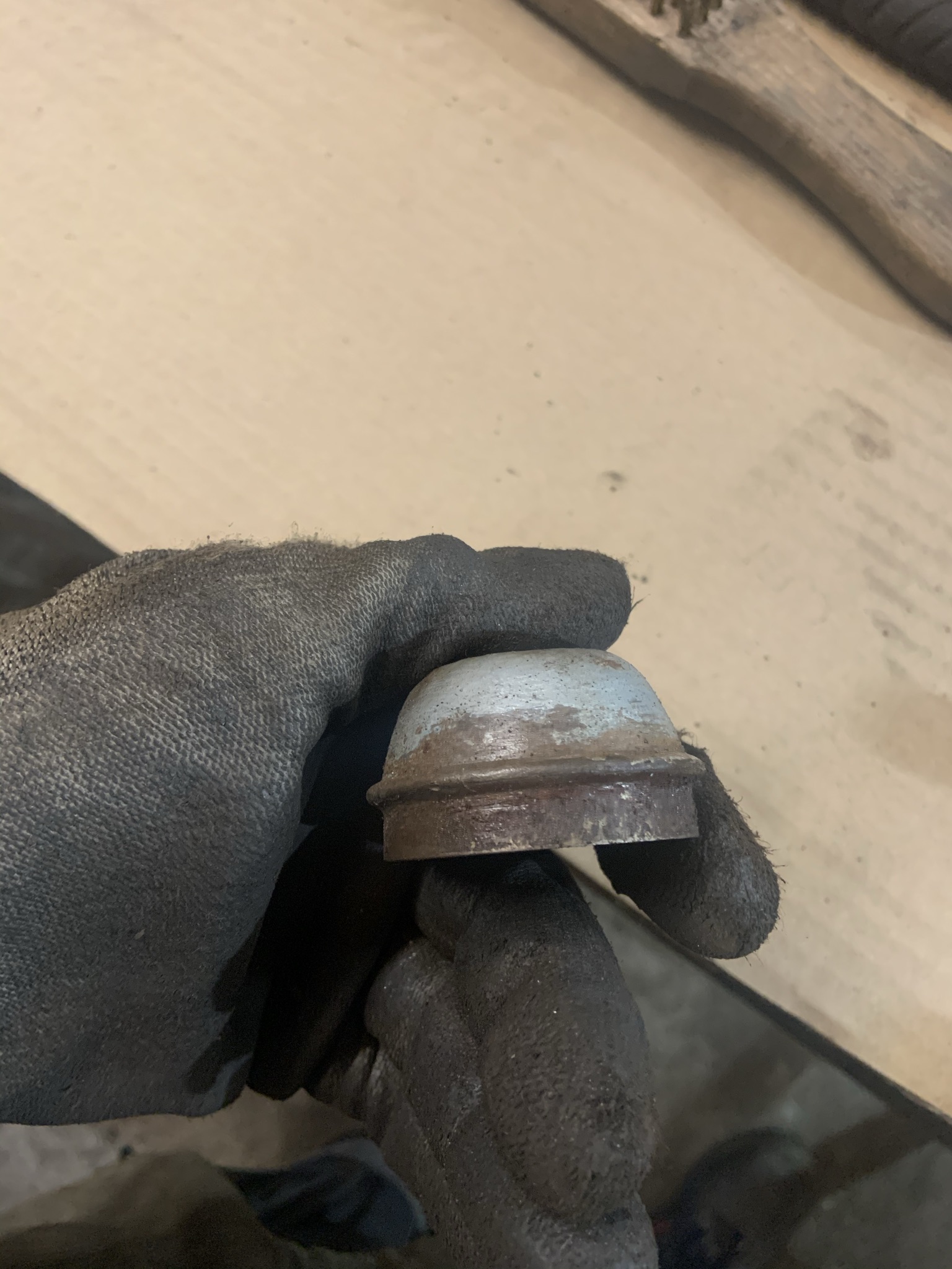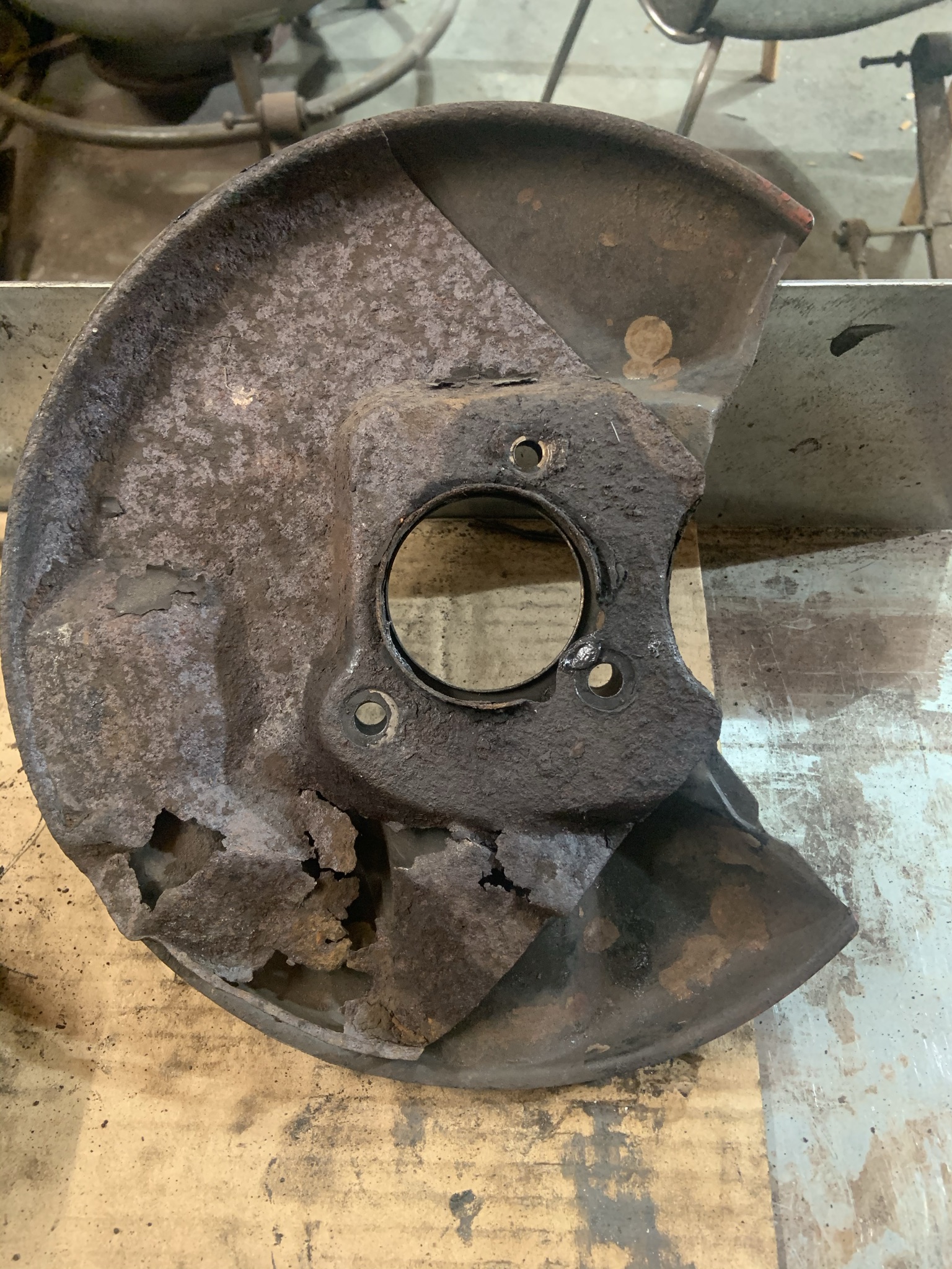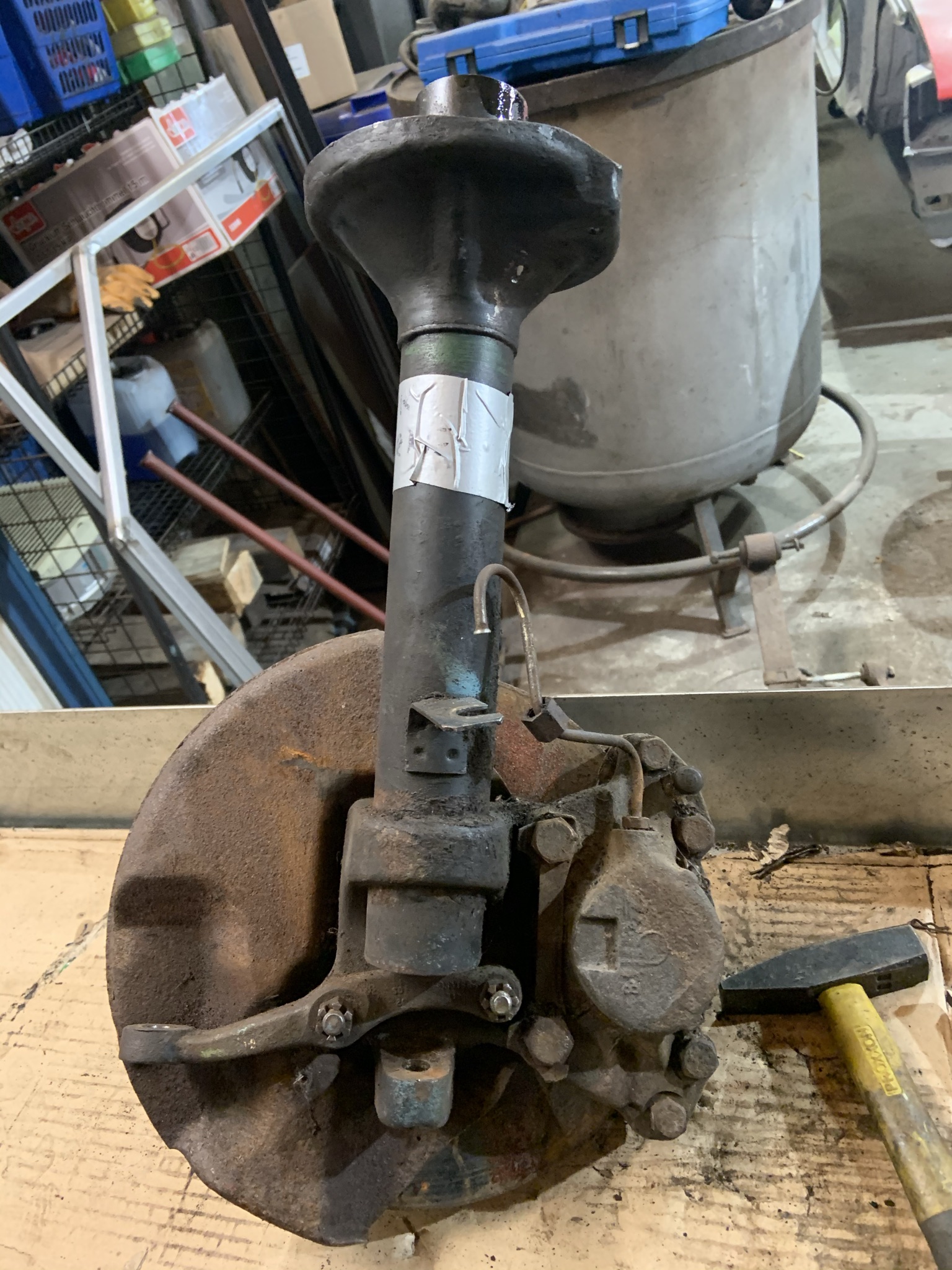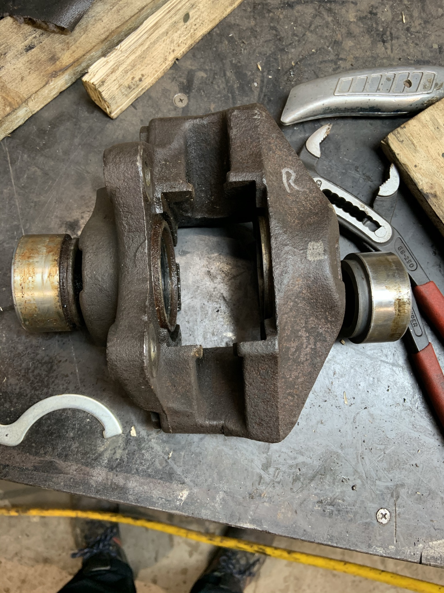 Radnarbendeckel ab, Splint raus, Sicherungsdings auch ab, Schraube lösen und schon geht die Bremsscheibe incl. “Radaufnahme” ab. Dann noch etwas WD40, Geduld und Hammerschläge. Dann trennt sich auch was eigentlich zusammen bleiben wollte 😉