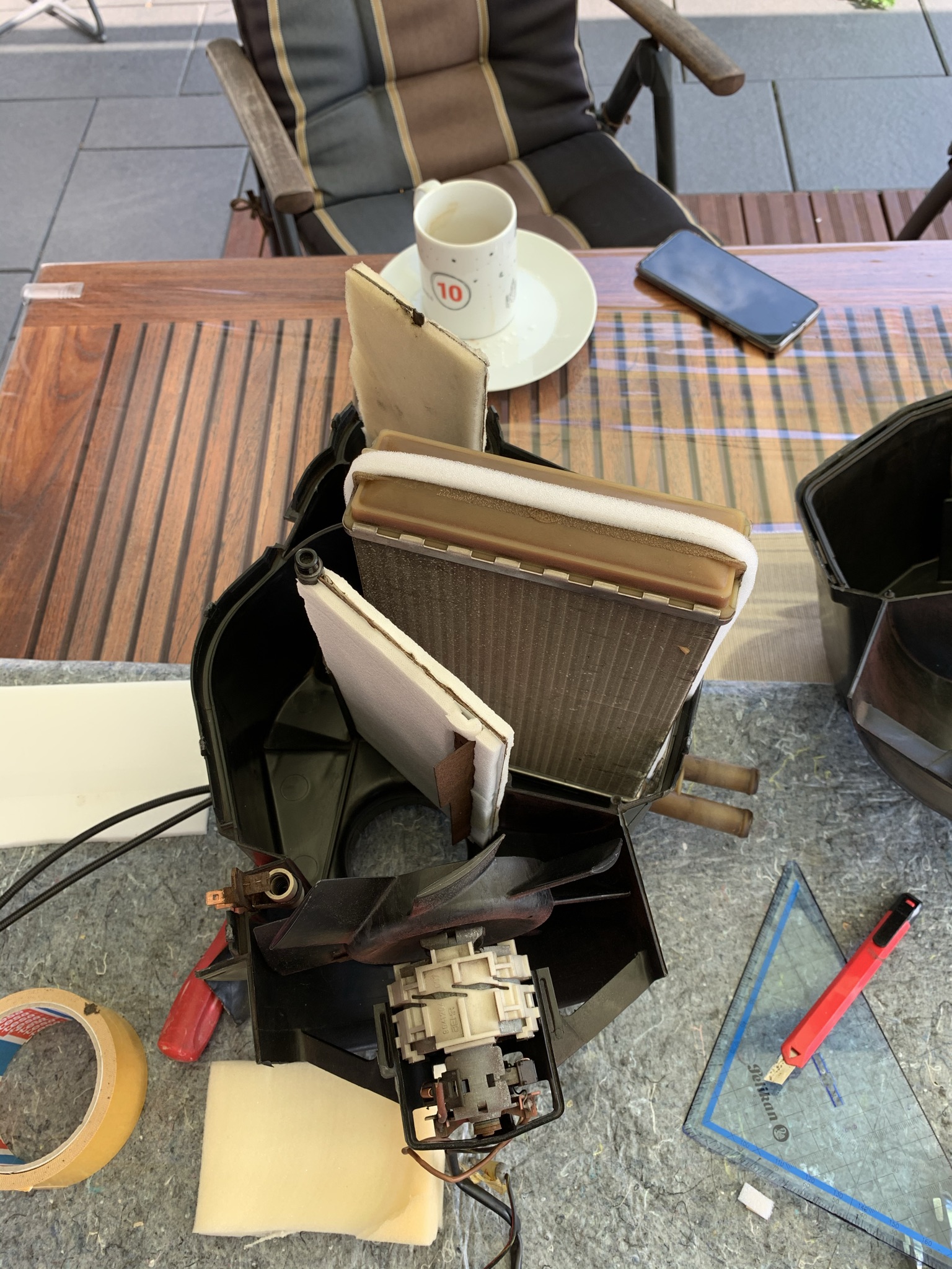 Heizung/Gebläse zerlegt und gesäubert und Innenausstattung aufgearbeitet