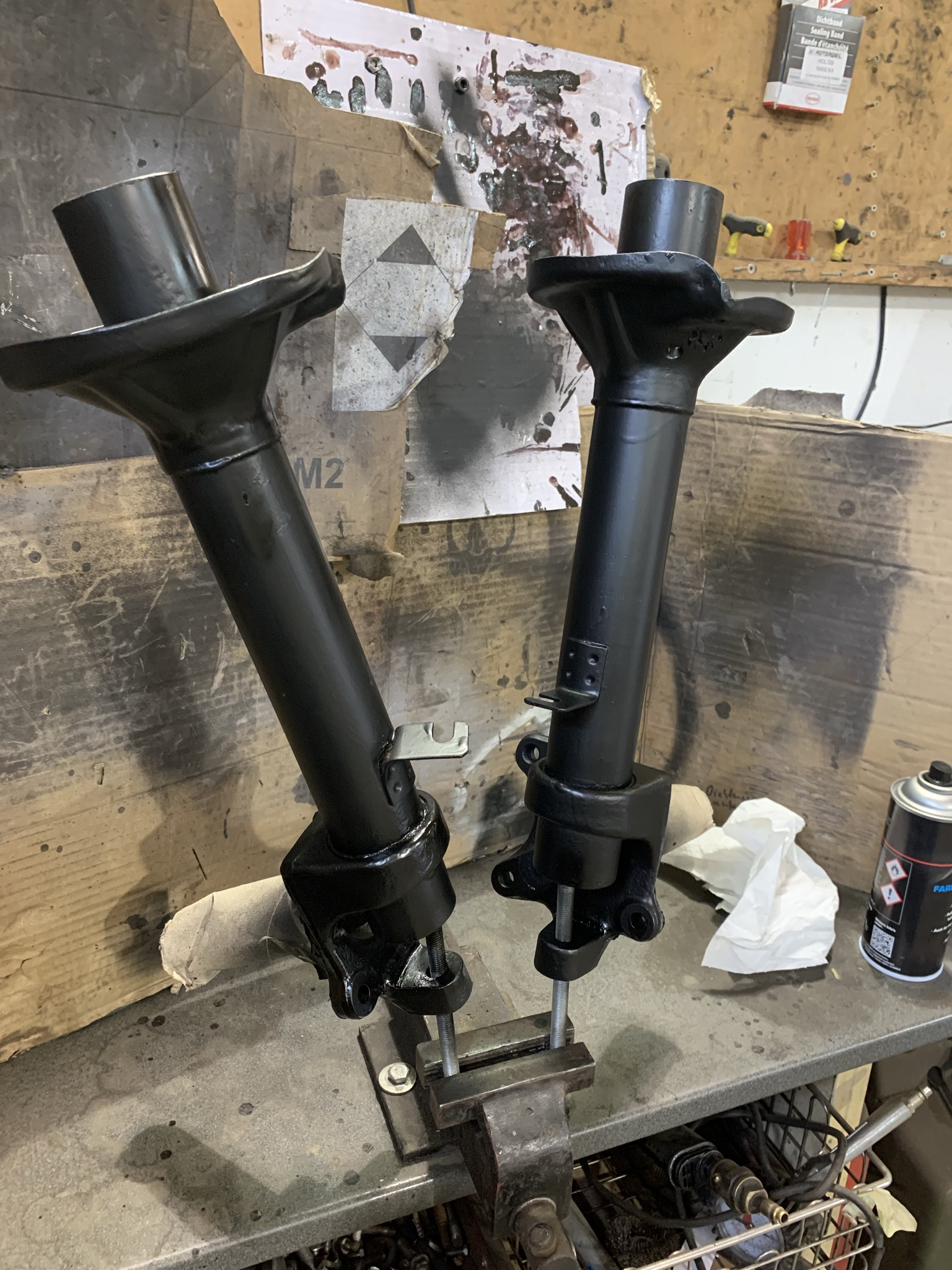 Hinterachse ist eigentlich fertig, Vorderachs- Federbeine auch und noch was geschliffen.