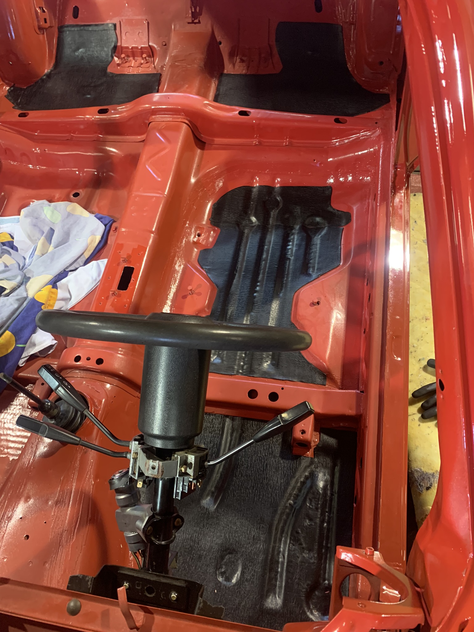 die Servo Lenkung ist auch komplett angeschlossen. Dämmung drin. Bis aus drölf Fragen der Verkabelung.. es geht voran