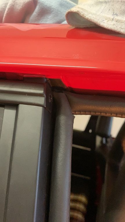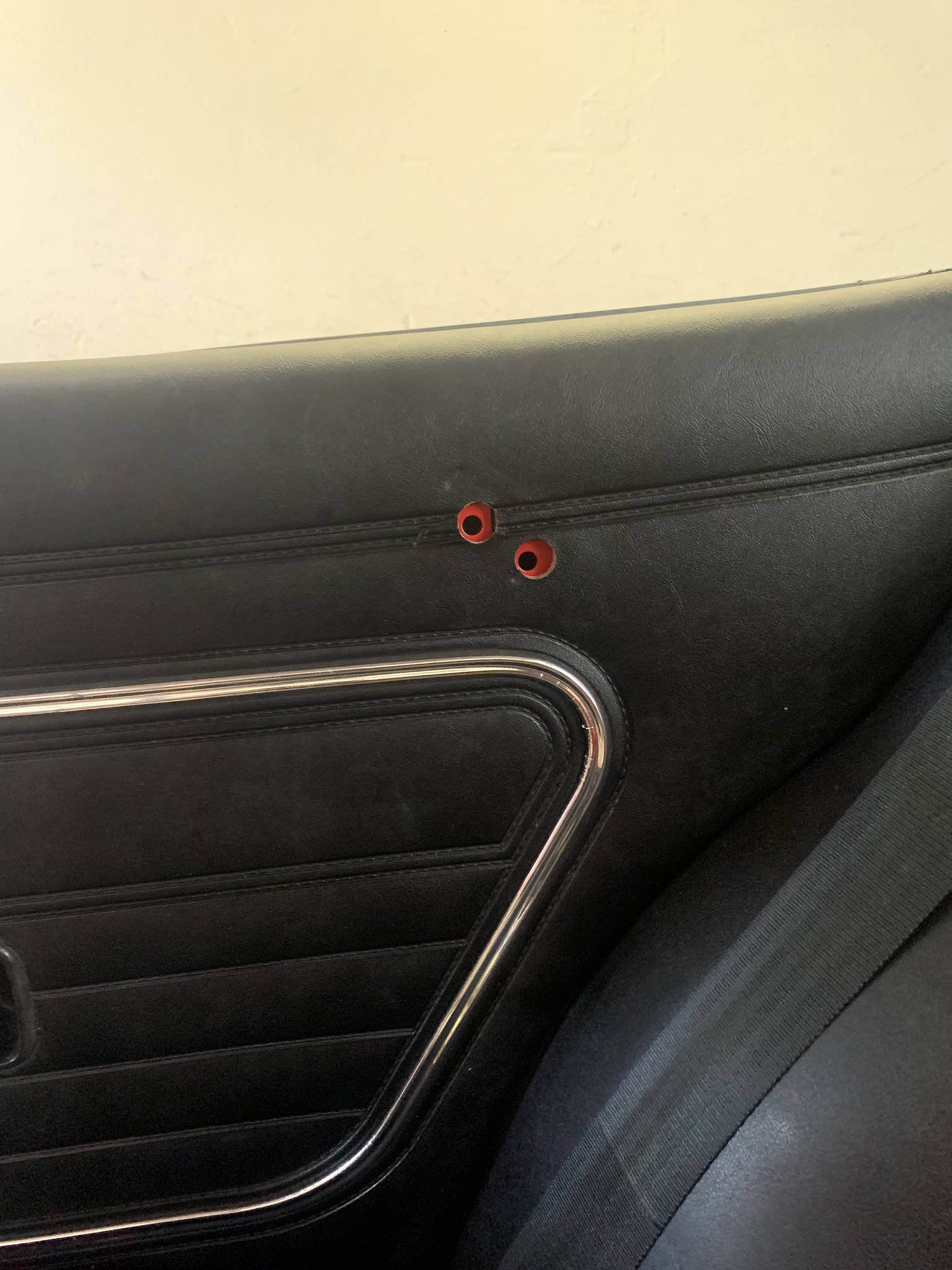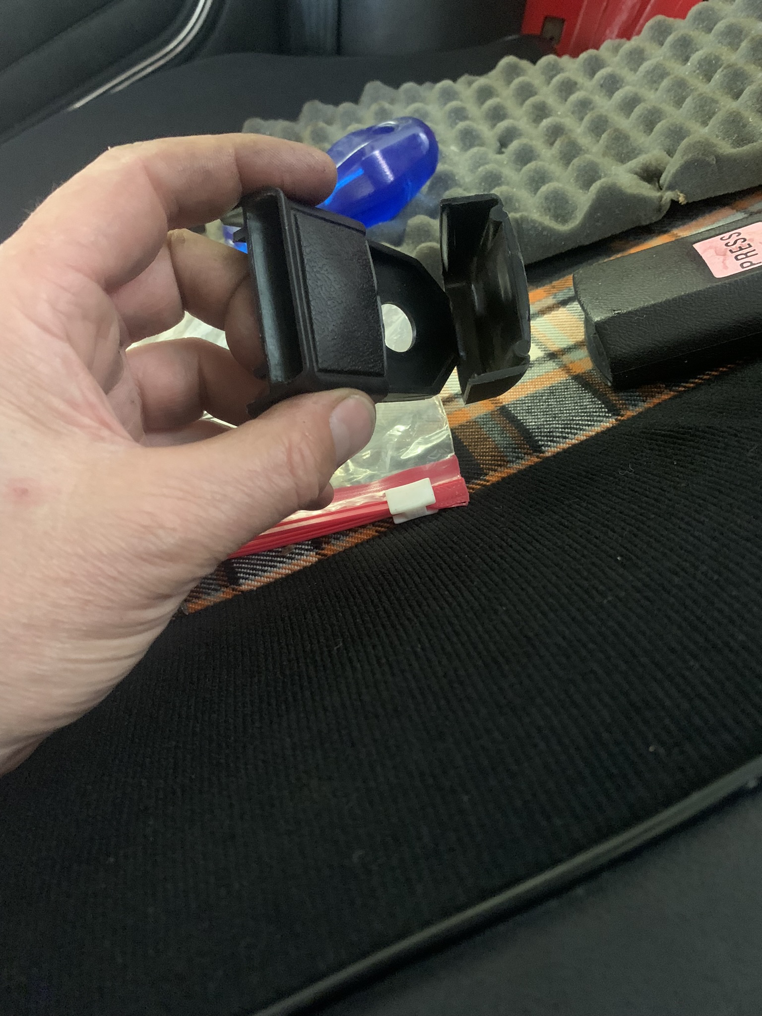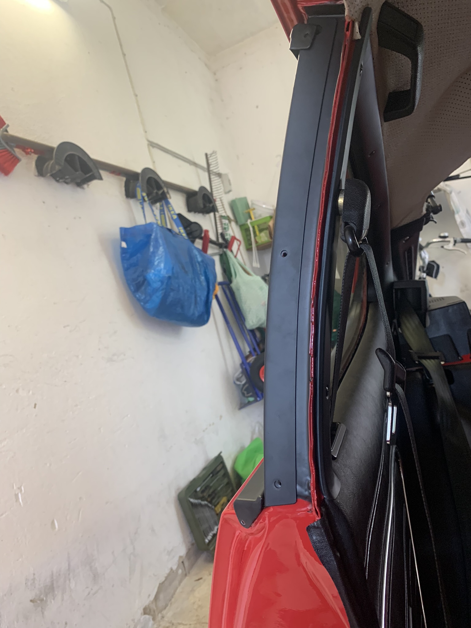 2 Löcher in der hinteren Seitenverkleidung sind wohl für Gurthalter?! Teile passen in die Abdrücke in der Verkleidung. Sinn entzieht sich mir noch.