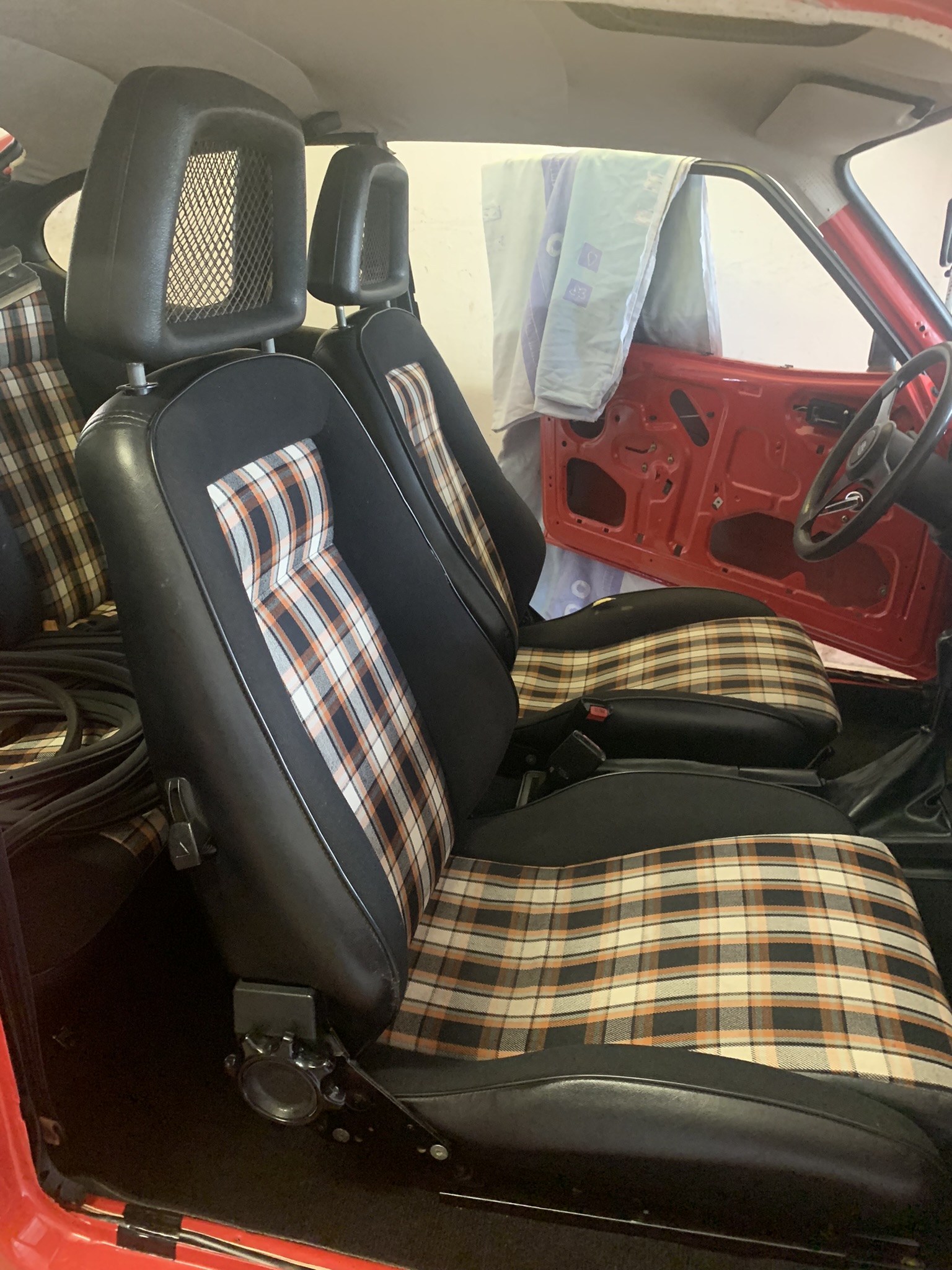 Sitze sind jetzt sauber, Sitzaufnahmen entrostet und lackiert.